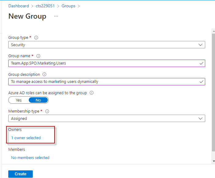 Once the owners and members are added, click on ‘Create group’.