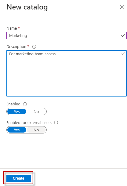 Click on ‘New Catalog’, give some name and description and leave the rest as default. In this case, I have given as marketing.