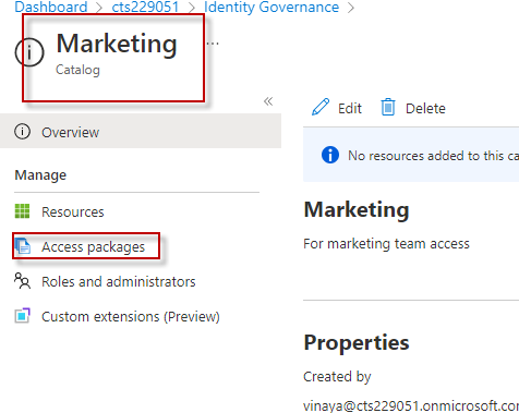 Check the access packages and you would see ‘Marketing Member Access’ access package.