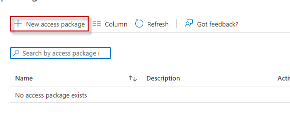 From the ‘Marketing Catalog’ section from previous steps click on ‘Access Package’ -- > New Access Package.