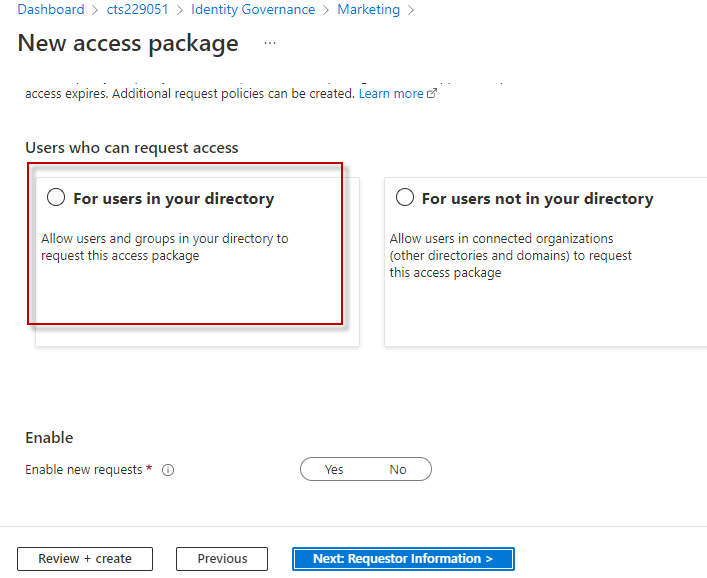 In the ‘Requests’ section, first select ‘Users in your directory’