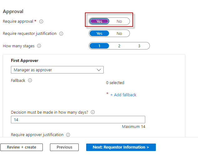 Now in the ‘Approval section’ toggle the required selection to ‘Yes’ and leave the rest as default.