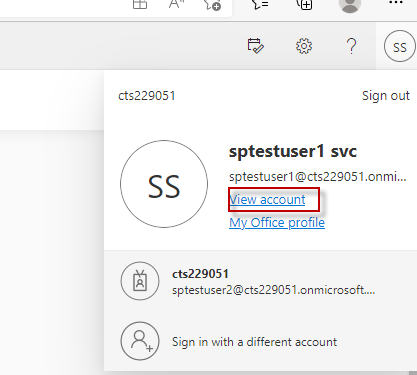 Now as an end user, in this case, sptestuser1, click on view account - My Access