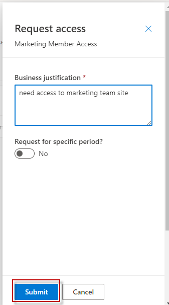 Under ‘Available’ access packages section, select access package and click on ‘Request’.