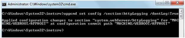 appcmd set config /section:httpLogging /dontLog:True [This will disable logging at server level].