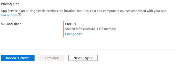 - Important Note: Choose the pricing tier properly, ensure the free option is selected as shown below, as by default it will show paid option.