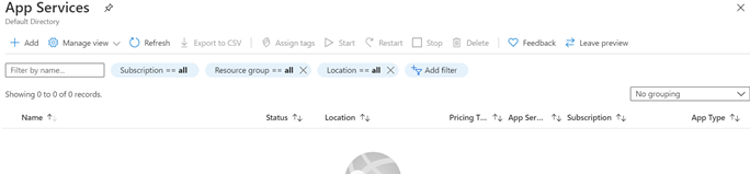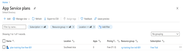 - Click Add in the App Service plans as shown below:
