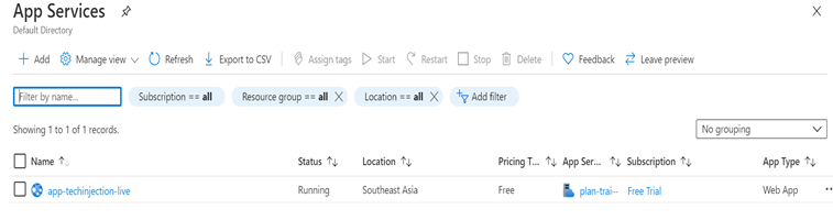 - Now our App Service is created and go to App Service to know the status as shown below,