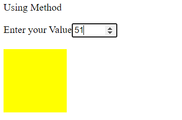In the following example, if user enters value 0-50 then 'low' class is applied, if user enters value 51-80 then 'medium' class is applied else 'high' class is applied to the div element.