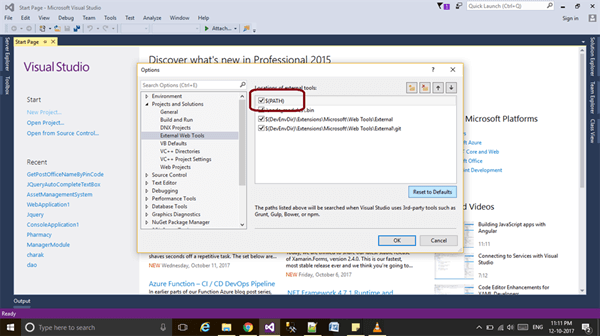Click Tools -> Options -> Project and Solutions -> External Web Tools.