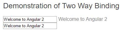 Similarly, in Angular 2.0, we have a directive called ngModel and it can be used as below.