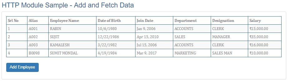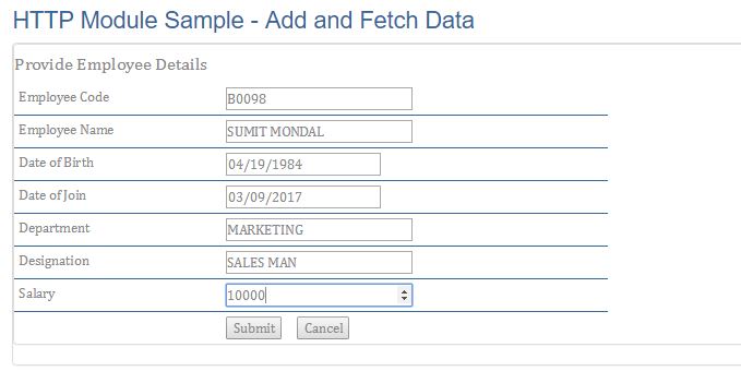 -     <h3>HTTP Module Sample - Add and Fetch Data</h3>