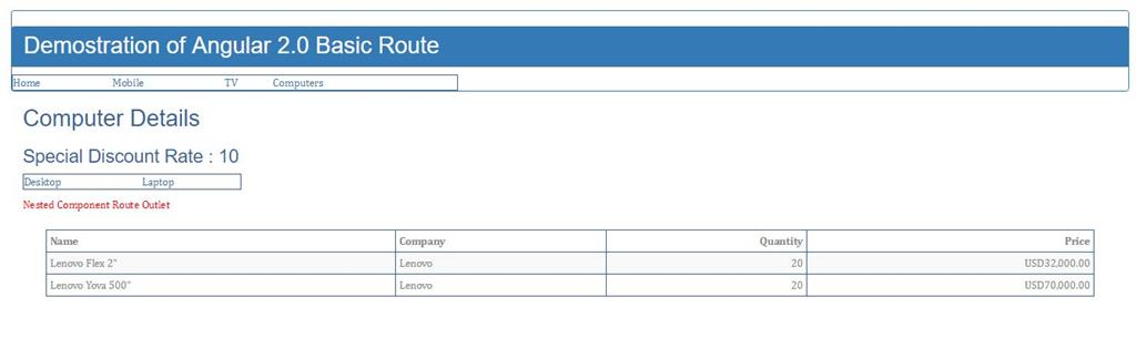 In my previous article, I already discussed about the basic route in Angular 2.0. Now in this article, we discuss about the child route or nested route in Angular 2.0.