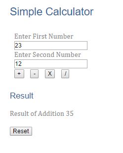 - First component i.e. child component contains two textboxes from taking inputs and four buttons for performing four basic mathematical operations. After completion of the operations, each button will emit its final value to the parent component so that the parent component can show those values or perform any other operations on the basis of those value.