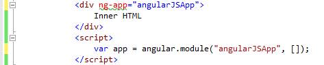 Here 'angularJSApp' variable associated with a HTML element refers to AngularJS application with the help of directive ng-app. We can define a module using an API, as shown in the code above.