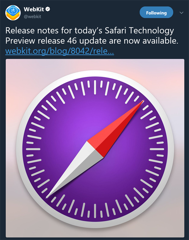Christmas Apple released an update to the Safari technology preview addition. If you're not familiar with this, it is an early beta release of the Safari browser.