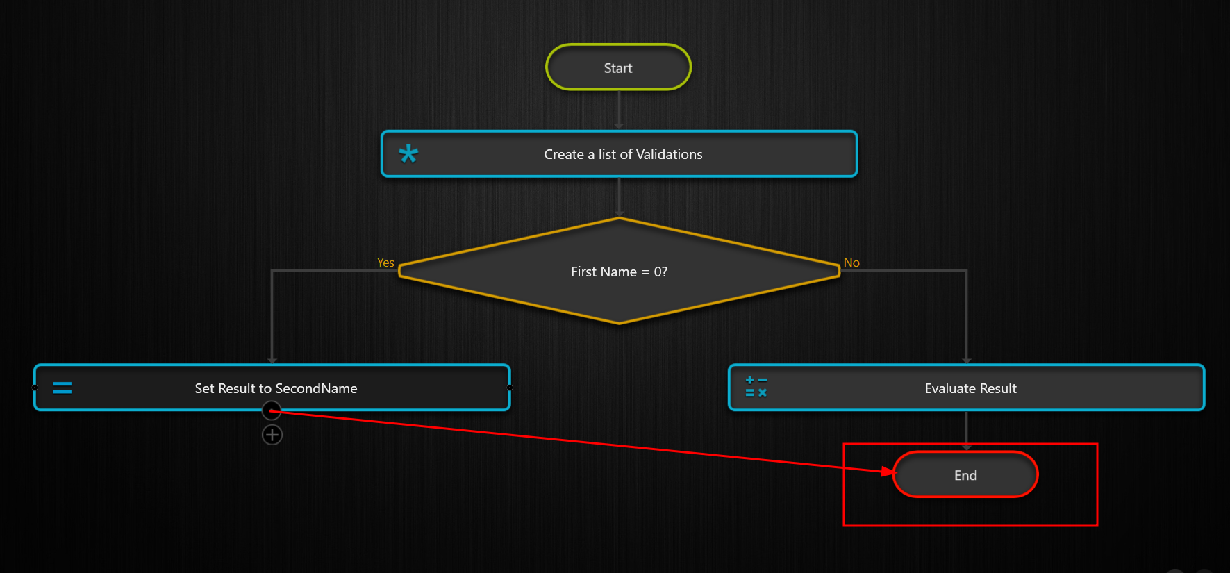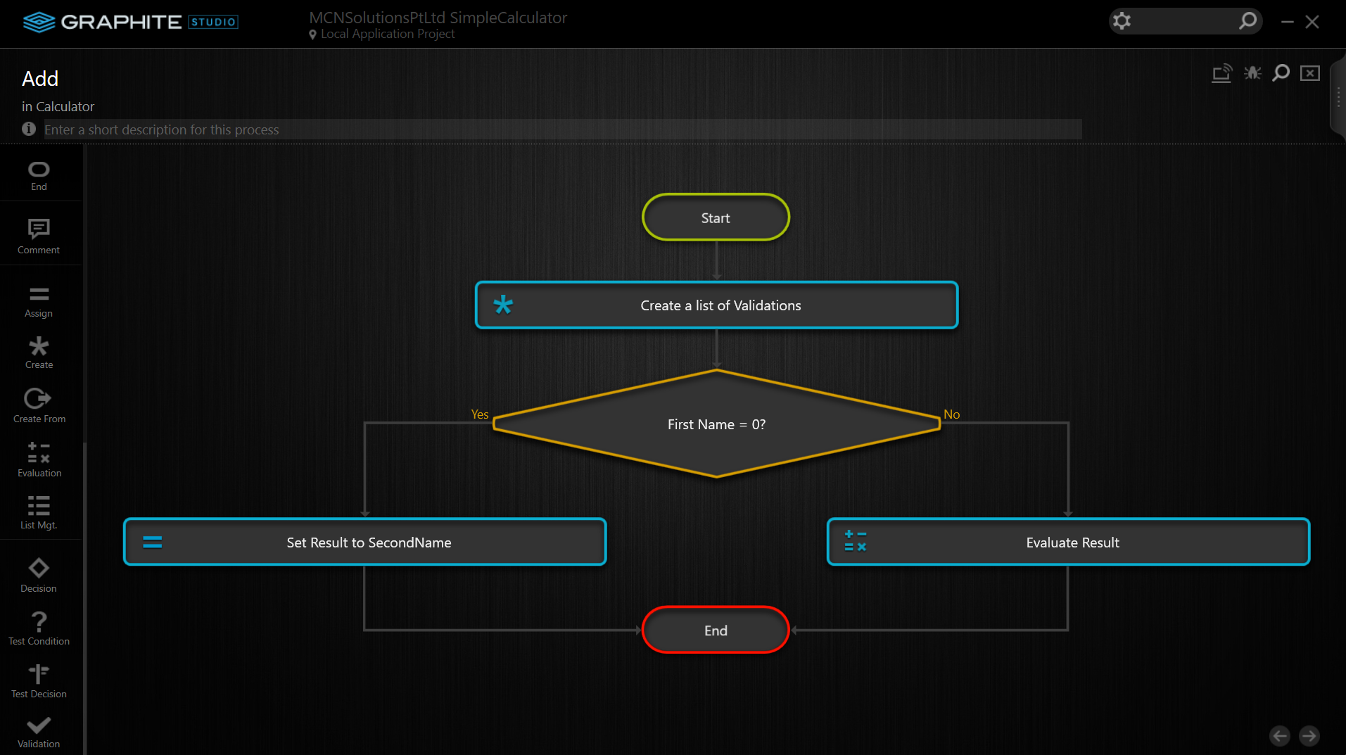 To calculate the Result, add an Evaluate shape for the false condition of the Decision shape, as shown in Figure below.