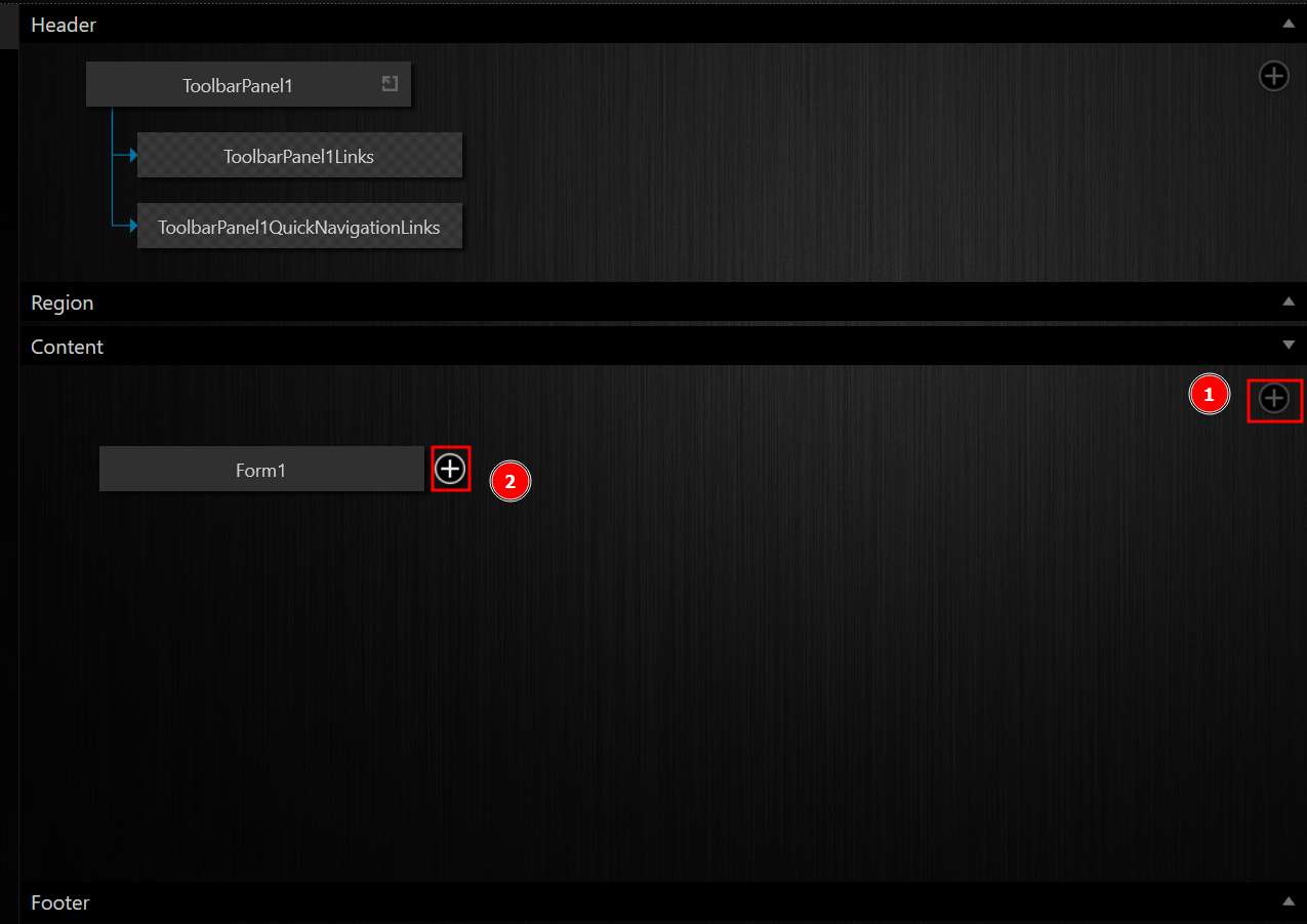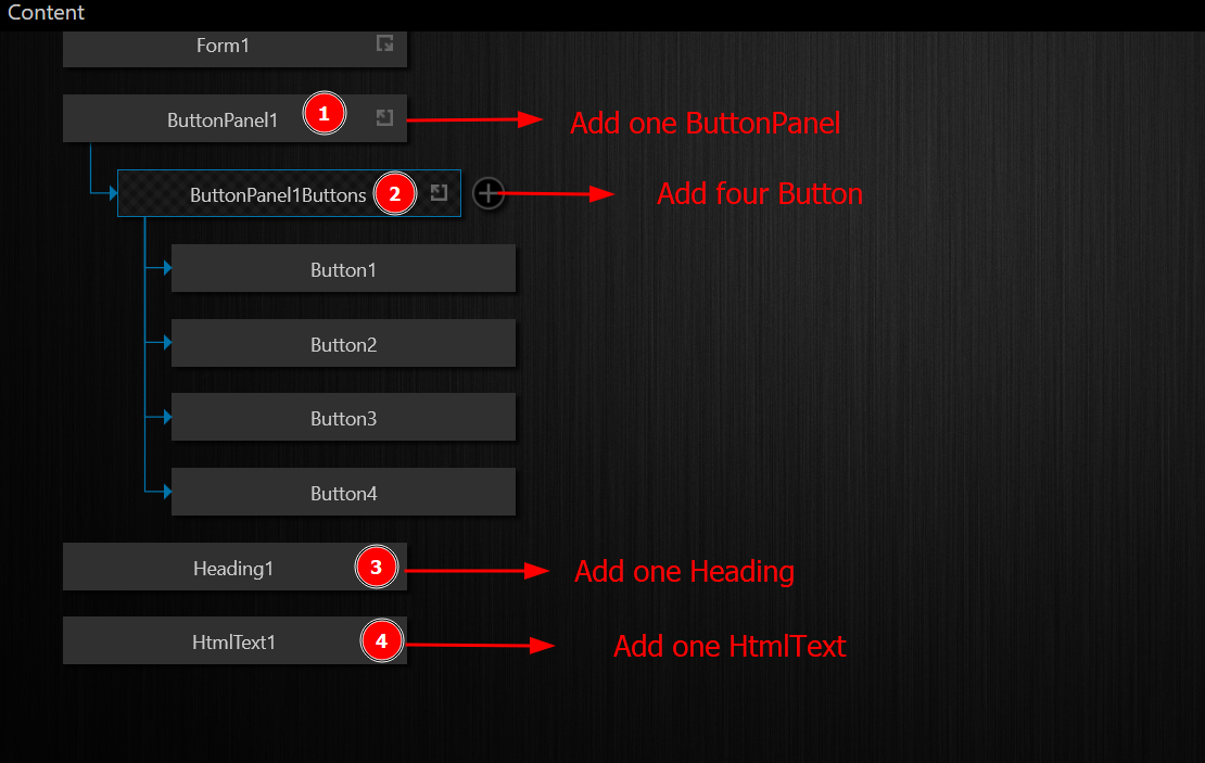 - In the Content palette, create a ButtonPanel (ButtonPanel1).