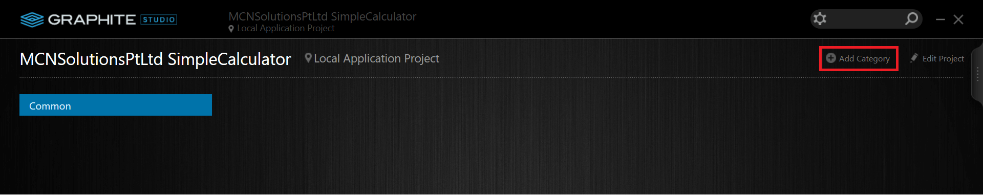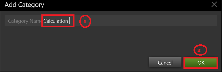 The content of every Graphite Studio Project is organized into categories. The GraphiteGTC.Core library material is found under the Common Category. Now click OK to create a new Category called Calculation.