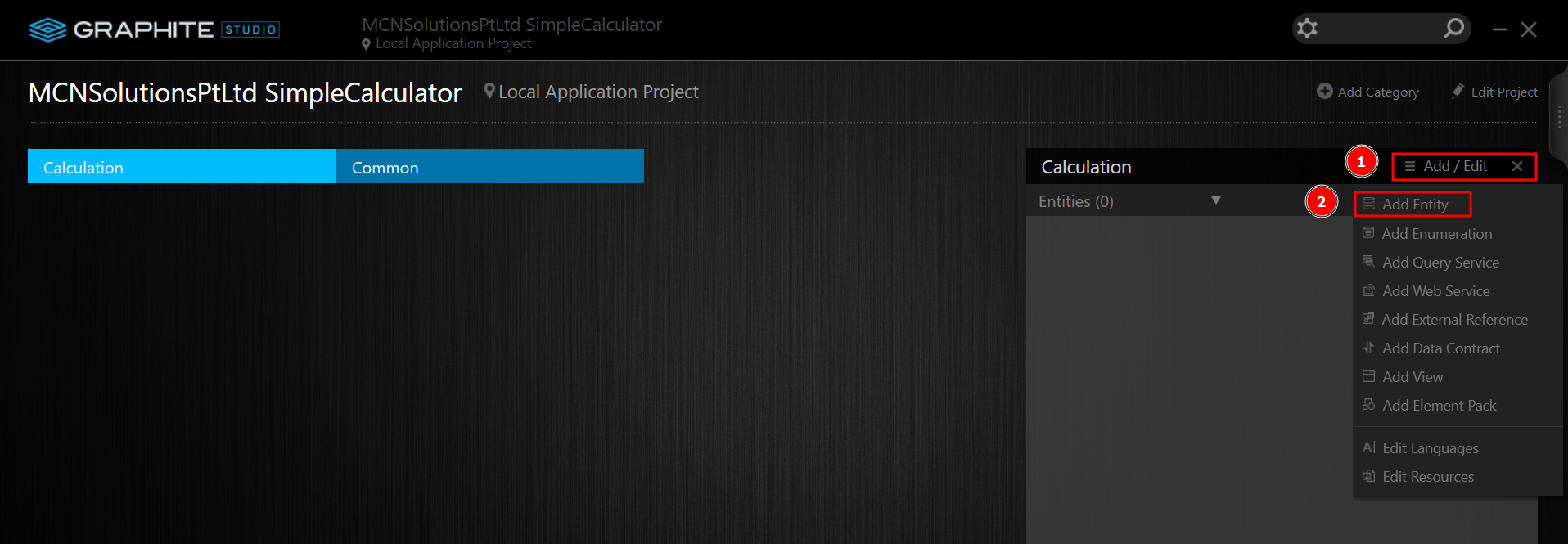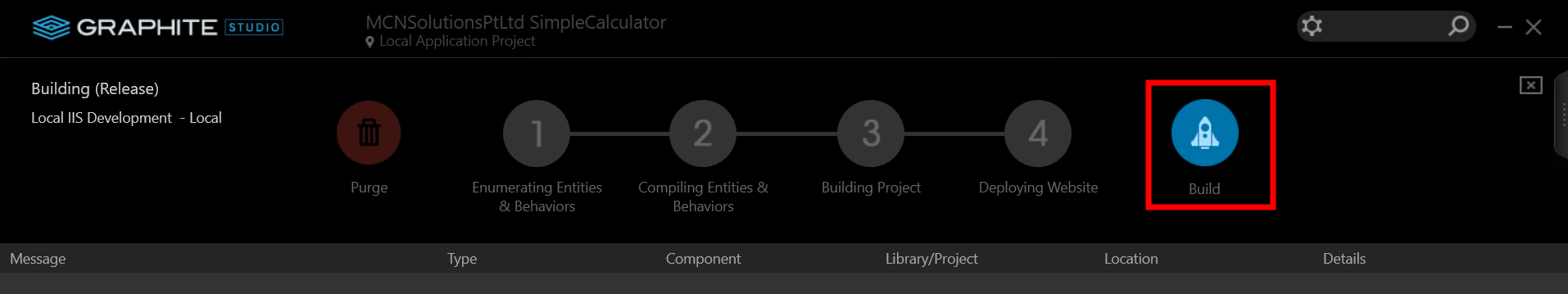 Everything you'll need to make the sample calculator The project is now finished. In the parts that follow, you'll set up a web application environment and develop the application.The details required for the deployment of the created web application are referred to as an Environment in Graphite Studio. Graphite Studio allows you to build multiple deployment environments for your application. These settings can be labelled as Public or Private.