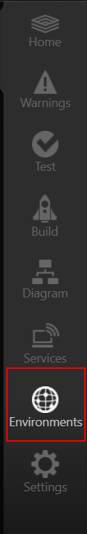 Environments is one of the menu items in the Side Bar. To get to the Environments Screen, click it.
