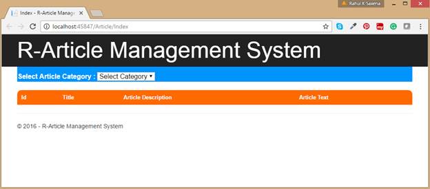 Here, I am going to make a project on Article Management System. Here, the user can post an article, view all articles, add new technology etc. In this first part, I am going to show how we can show all articles in a list. Here, I am going to use Code First approach.