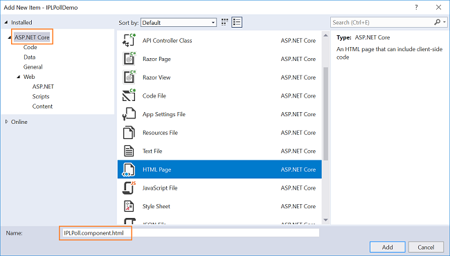 In this article, we will create an online poll application using ASP.NET Core, Angular 5, and Entity Framework Core. Since this is the season of IPL in India, we will create an online poll for “Who is going to win IPL 2018?”. The poll results will be displayed as a column chart, that is created using Highcharts.