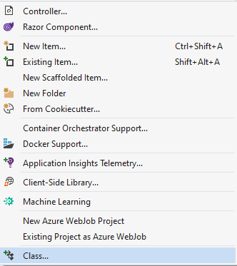 Now, we will be adding our class files to the Models folder. After creating a Models folder, right-click on the Models folder, select Add, and then click on the class.