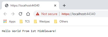 In the above code, we have created simple Middleware using the Run() method. We will execute the code and see the output,