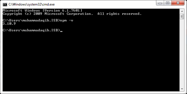 To check if it has successfully installed on your local machine, open Command Prompt Window and Type node –v and hit enter. If it returns the node version, as shown in the image, it has been successfully installed.