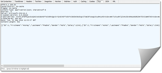 Now, if don’t set any Acceptheader, then by default Web API returns JSON data.