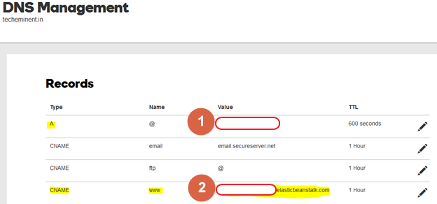 Now on DNS Management screen update DNS records as per below.
