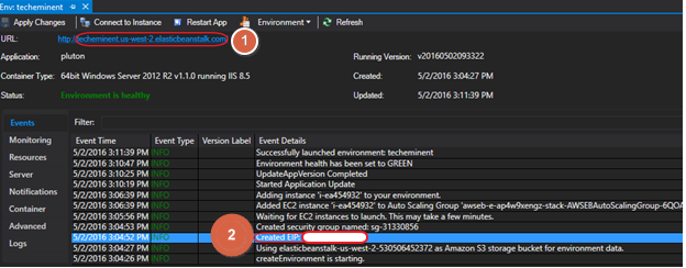 In the previous article, we deployed our application to AWS and reached the below screen with all event statuses. We are going to use its details in linking domain to our application.