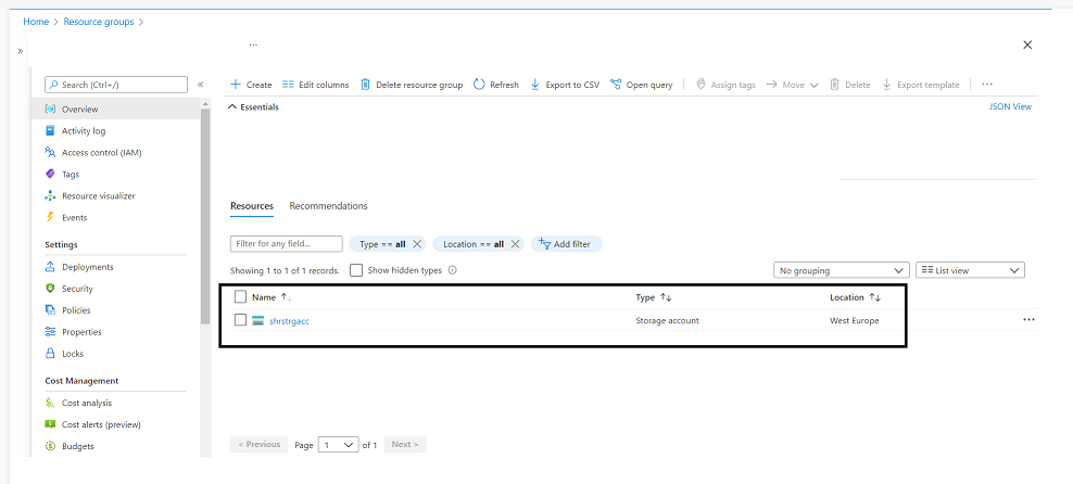 Wohoo, Storage is created in the Resource group mentioned in the New- AzResourceGroupDeployment