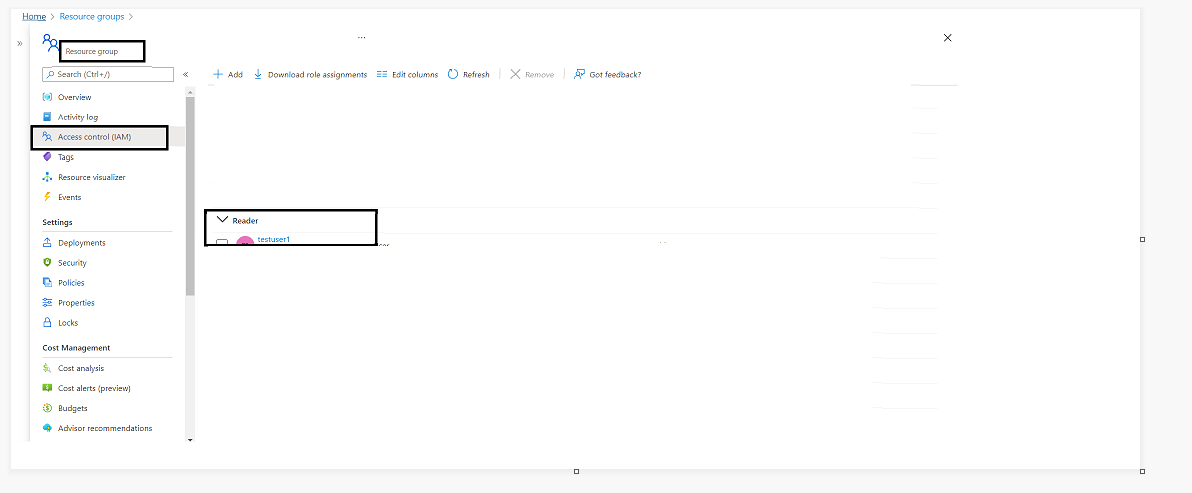 Now, Let's check if the Reader role to the testuser is assigned to the Resource Group