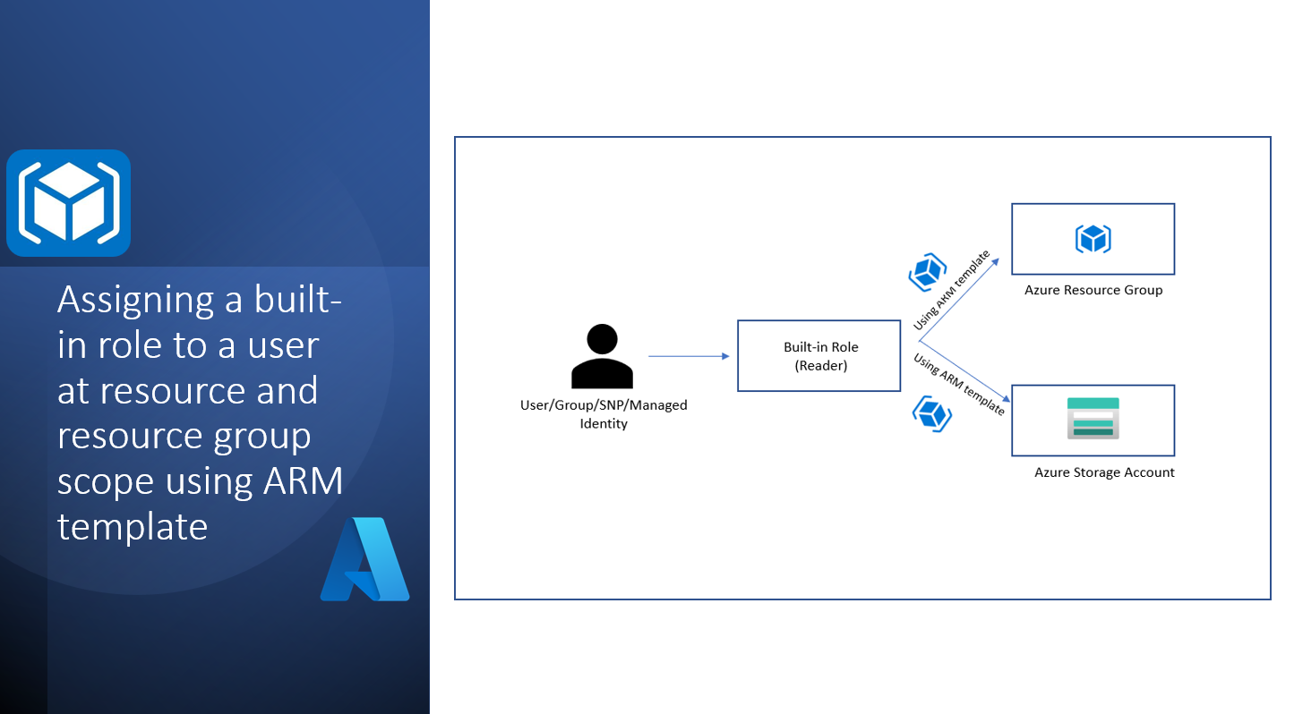 This article is focused on creating an ARM template that will create a storage account resource in the resource group and will assign role at both RG (Resource Group) scope and created storage account resource level