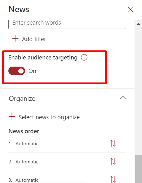 If we are applying audience targeting in news posts we need to keep in mind news post must not be organized under organize section. Currently, Microsoft provides this limited feature for audience targeting in news posts.