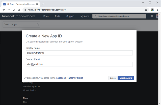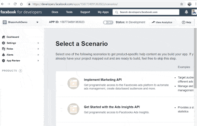 We need to store the App ID and App Secret field values in our application. We will use Secret Manager tool for this purpose. The Secret Manager tool is a project tool that can be used to store secrets such as password, API Key, etc. for a .NET Core project during the development process. With the Secret Manager tool, we can associate app secrets with a specific project and can share them across multiple projects.