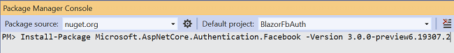 Install-Package Microsoft.AspNetCore.Authentication.Facebook -Version 3.0.0-preview6.19307.2