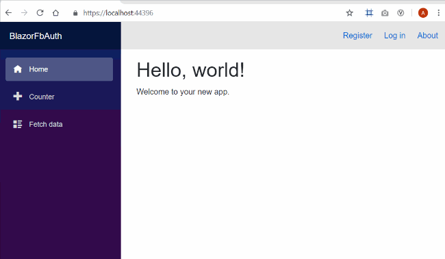 This code will read the AppId and AppSecret from the secrets.json file. The AddFacebook() method is an extension method and it is used to configure the Facebook Authentication options for our application. We are also handling the event of OnRemoteFailure in this code section. Hence, if the user denies access to his Facebook account, then he will be redirected back to the Login page of our Blazor application.