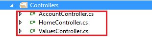 So, in a Web API solution, you’ve three Controllers - Account, Home, and Values. The Account Controller is responsible for the authentication logic while Home Controller is our MVC Controller where you can work with Views.