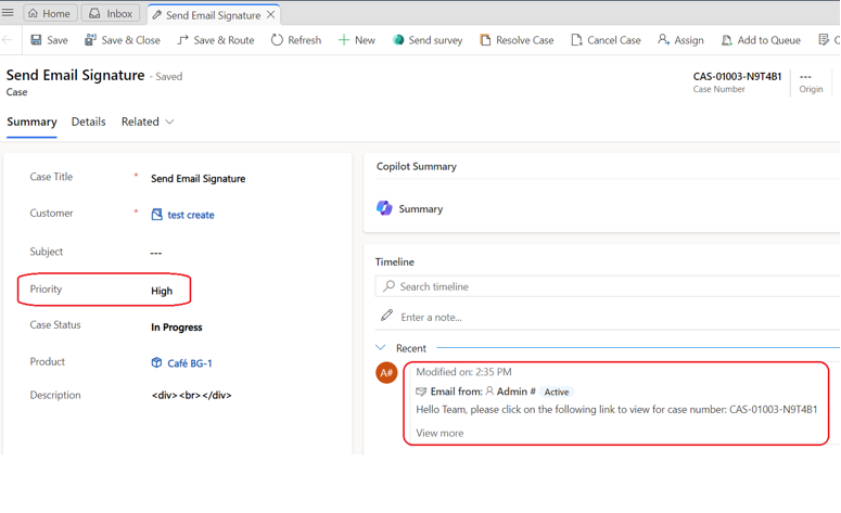 When the case priority is changed from Normal to High, an email will be automatically generated and included in the timeline grid.
