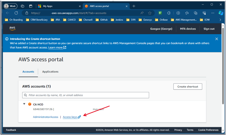 AWS Management => My Apps to get the AWS Dashboard Page: