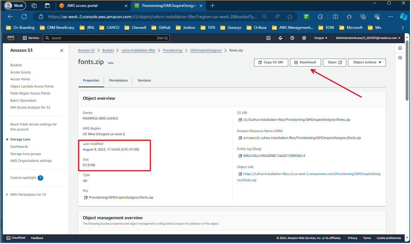 to open the Amonzon S3 page => Click cahcon-installation-files