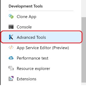 How to access KUDU: When we create any web site in Azure then it creates one special ‘SCM’ service site for us. Example- your Azure web site URL is ‘http://ABC.azurewebsites.net/’ then Azure creates SCM site for us with URL ‘https://mysite.scm.azurewebsites.net/’. If you open this SCM service site in browser, then it opens the KUDU console for us. We can also navigate to this KUDU console by clicking on the ‘Advanced tools’ in the deployment Tools section of the web site.
