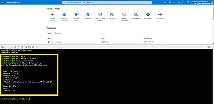 Now, let us learn to implement the Node.js Web app in Azure.