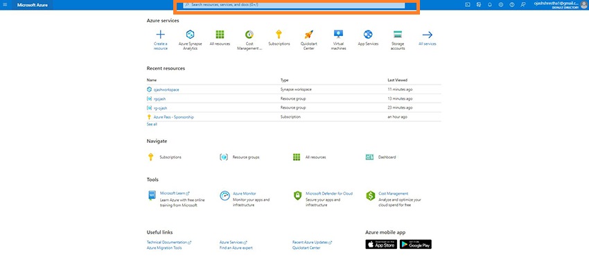 Login to the Azure Portal. You’ll be taken to the Home Page.