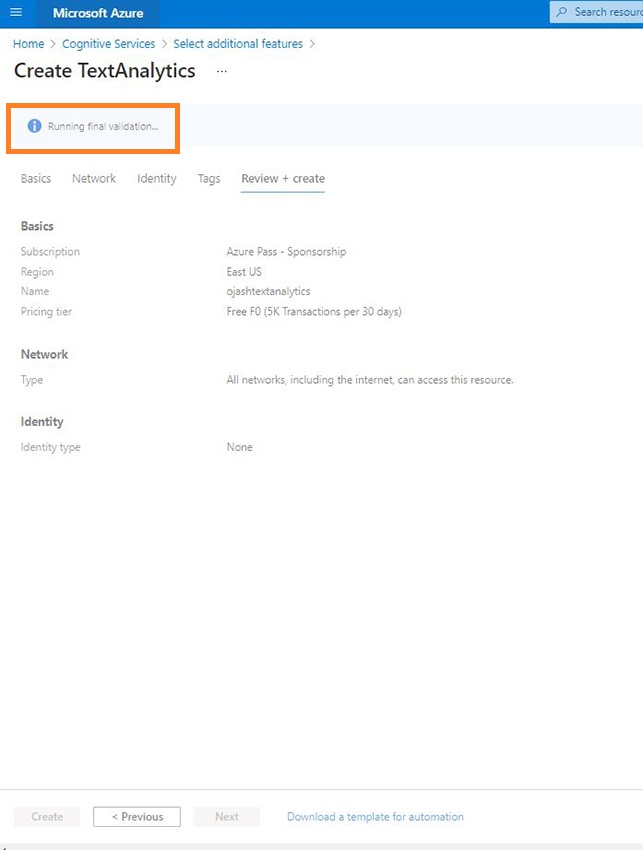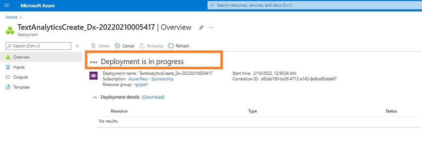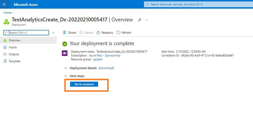 Finally, we can see, we have created the ojashtextanalytics. This service can now be utilitized from numerous projects as per our need. We’ll later use this service for our Sentiment Analysis with Azure Synapse Analytics.