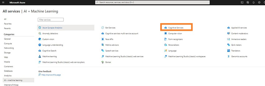 You’ll be taken to the services list page. Here, select, AI + Machine Learning.