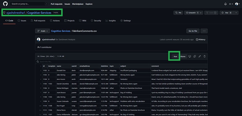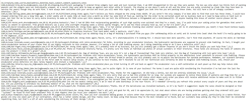 df = spark.read.load('abfss://[email protected]/data/FabrikamComments.csv', format='csv'